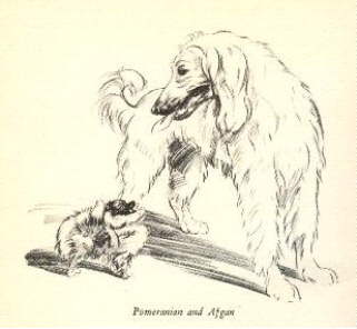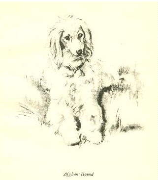 From a book of drawings by Diana Thorne published in 1953. Diana Thorne, born and raised in Winnipeg, Manitoba, left for Germany in 1912 to attend art studies in Munich and Berlin. Unfortunately, the First World War began two years later and Thorne, a Canadian citizen, was detained by the German government as a hostile alien. Diana, however, managed to escape to England where she supported herself for several years as a reporter, librarian and writer. It was during this period that she began illustrating and etching. Diana Thorne moved to the United States in 1917, where she became one of America's most recognized canine artists. Some of her most famous illustrated books include Puppy Stories, Chips, Cocker Spaniel, Major and the Kitten, Baby Animals, The Dog Book (1932), Dog-Basket (1930), and Your Dogs and Mine (1935).