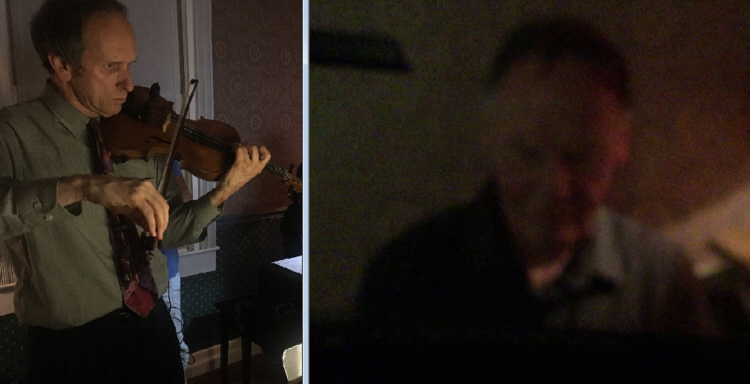 Daniel of the Z Cabernet Duo (left) on violin, grainy photo of Steve (right) on piano