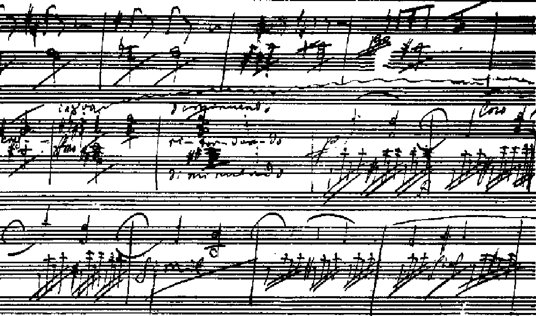 Beethovens hand written manuscript, bars 42-60 for sonata #27 Opus 90 in E Minor