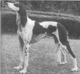 Of Mrs Skelton-Fortune's original pair, Candida was the first to be bred from and mated to Mazuri Kiraben which produced Marathon of Daxlore, a black and white particoloured dog. This dog as well as becoming one of the greatest characters his owner has known, also became an outstanding stud dog.